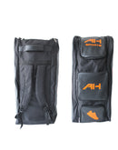 High-quality cricket sports bag crafted from durable materials with foam padding for gear protection. Features premium designer zips, an adjustable shoulder strap for comfort, and top access to the main compartment. Separate leg guard & shoes compartment. Two Bat Pockets inside with extra padding protection. The Interior includes a mesh pocket for accessories and an integrated zipper pocket for a cricket bat. Extra front zipper pocket for added storage. Perfect for cricket enthusiasts seeking a blend of durability and convenience in a stylish design.
